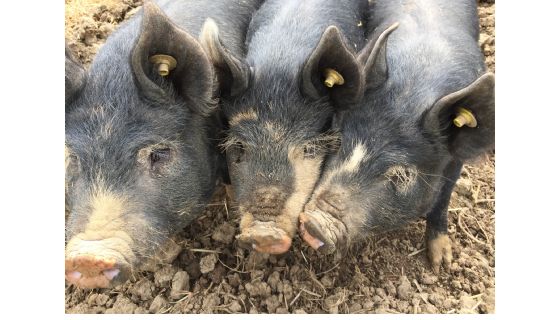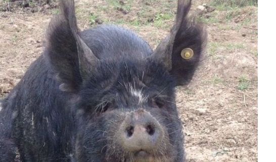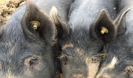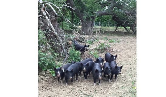 The Berkshire originated in the Thames Valley. Although primarily black in colour, the Berkshire carcass dresses out completely white, and has a high proportion of lean meat to fat. The flesh is fine in texture, and has a distinct flavour.